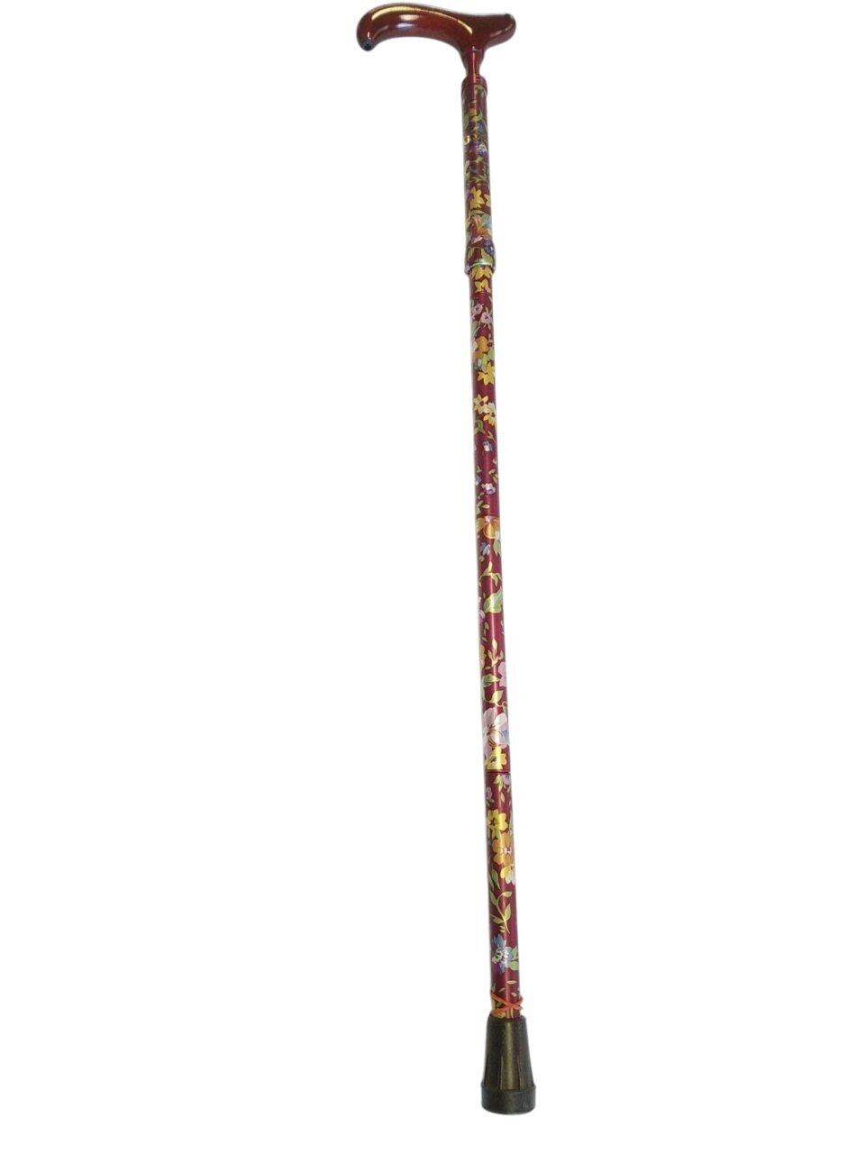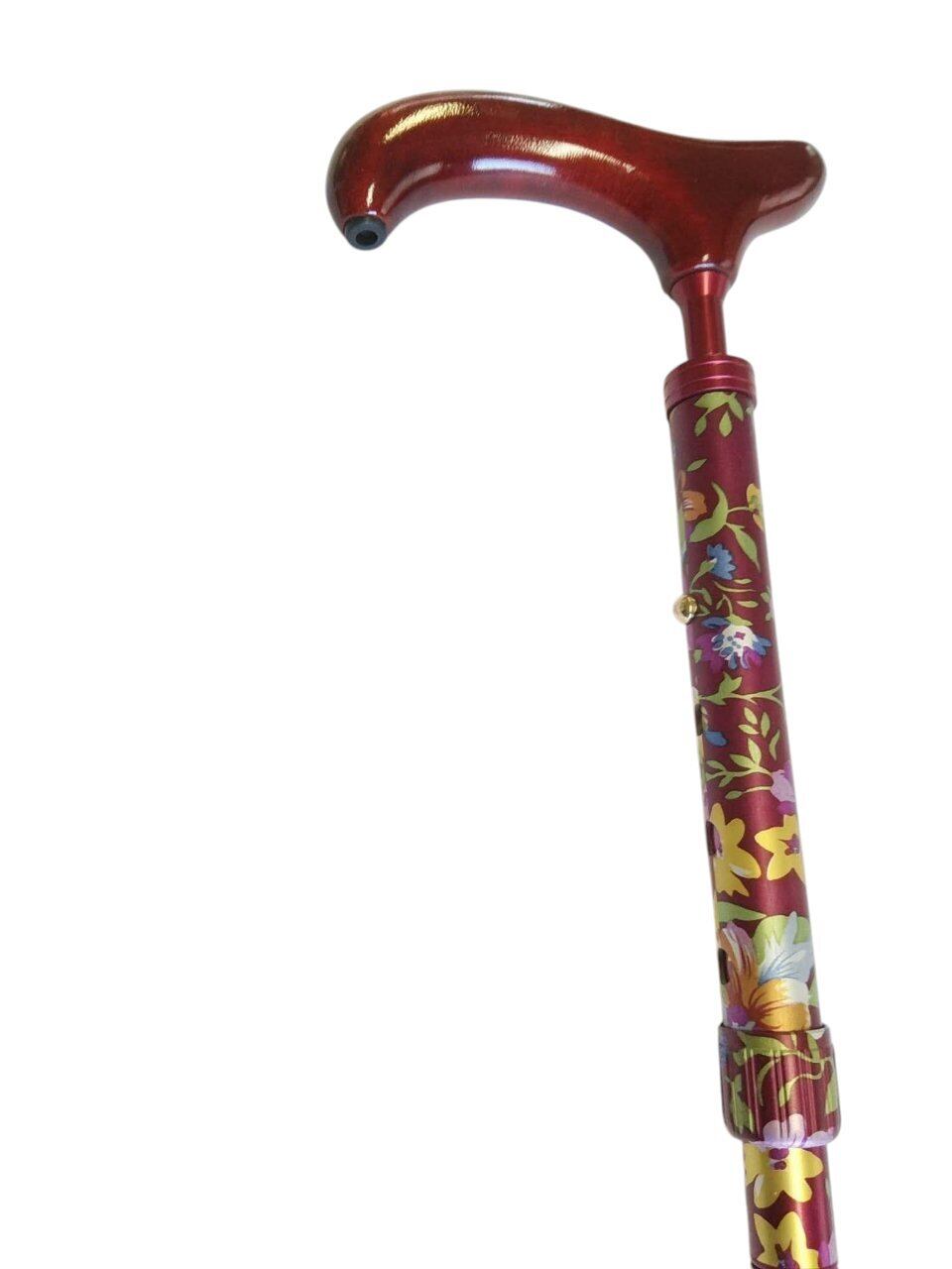I-04 手元スリム 折りたたみステッキ 花柄 赤