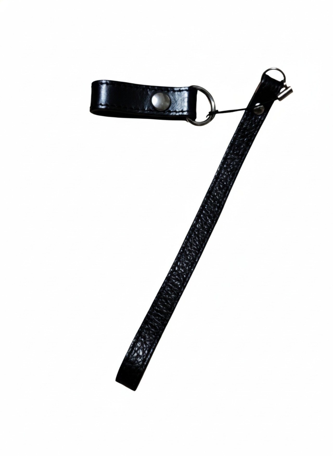 ステッキの支柱に巻くレザーホルダーは、ホックで留めるようになっており、外れても元に戻せます。